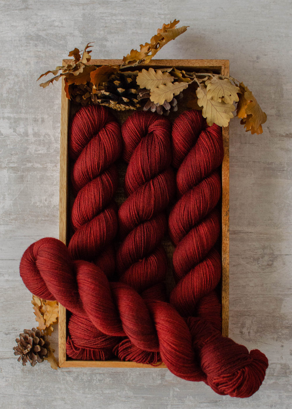 Esta lana está teñida a mano en pequeños lotes. Por la naturaleza de la técnica no existe ninguna madeja idéntica, ni siquiera en el mismo lote, siempre habrá algunas variaciones. Estas variaciones pueden incluir diferencias en el tono e intensidad de color, motas más claras o más intensas, etc. Cada madeja es única.