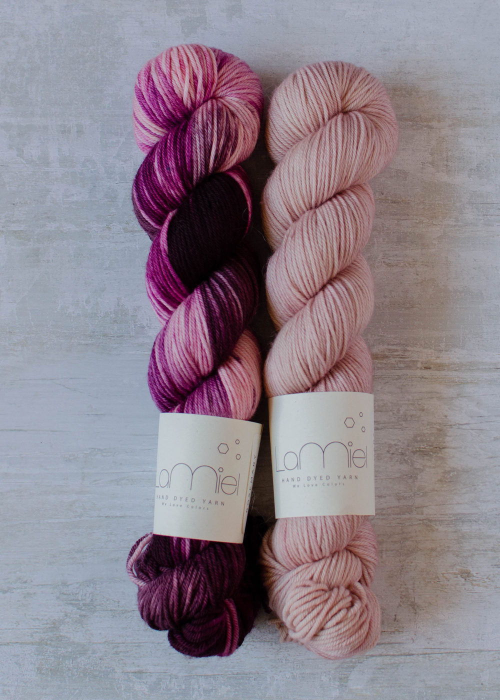 Súper oferta!! Pack compuesto por dos madejas de la calidad Rosemary DK en los colores Berry Twist y Quartz. Este pack puede estar compuesto por distintas tintadas, puedes ver las madejas en la foto.