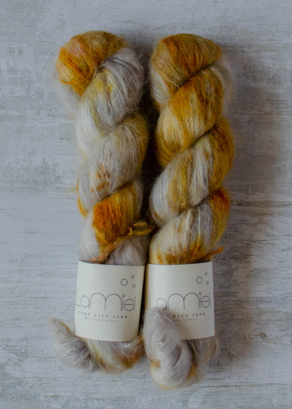Esta lana está teñida a mano en pequeños lotes. Por la naturaleza de la técnica no existe ninguna madeja idéntica, ni siquiera en el mismo lote, siempre habrá algunas variaciones. Estas variaciones pueden incluir diferencias en el tono e intensidad de color, motas más claras o más intensas, etc. Cada madeja es única.