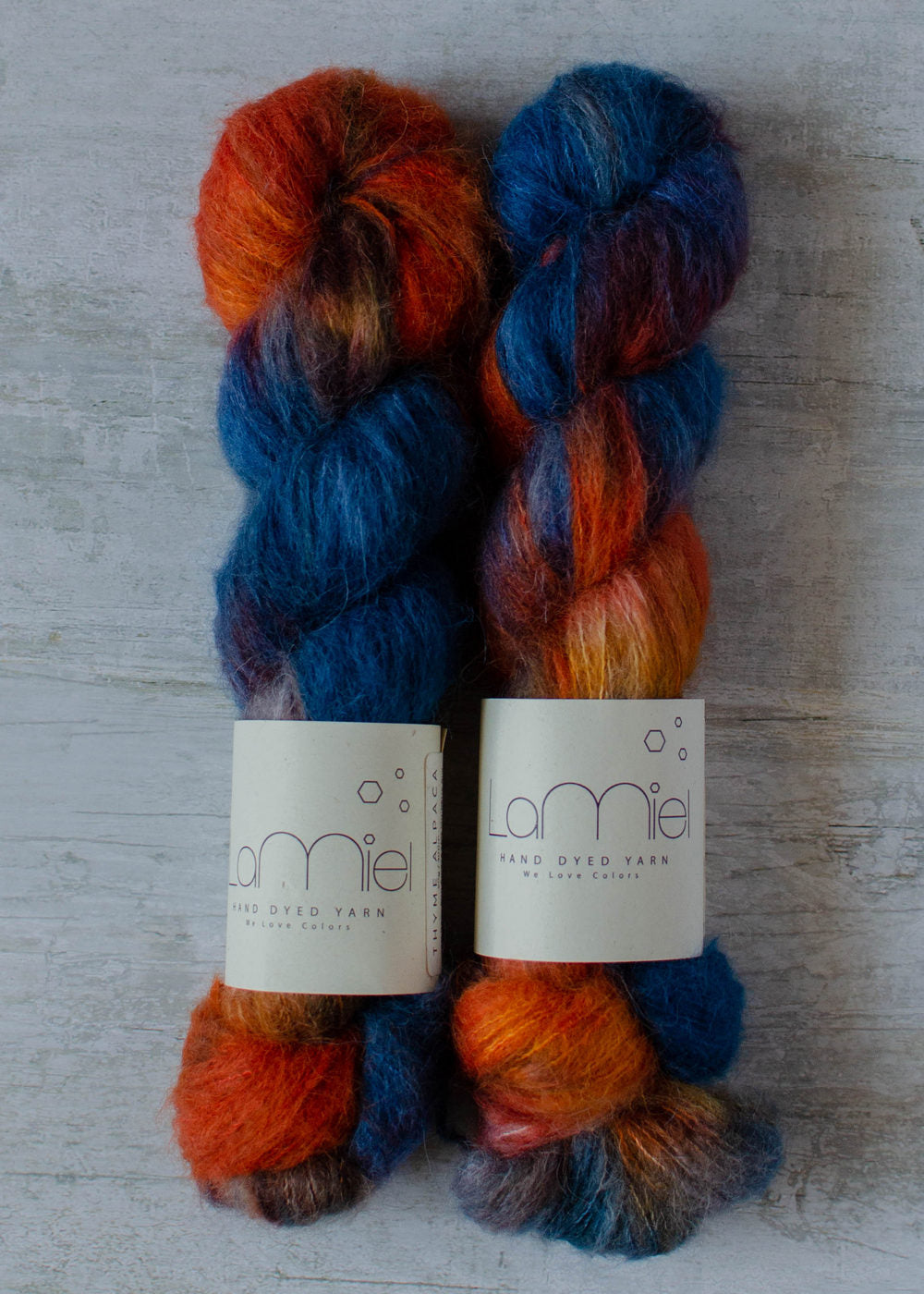 Esta lana está teñida a mano en pequeños lotes. Por la naturaleza de la técnica no existe ninguna madeja idéntica, ni siquiera en el mismo lote, siempre habrá algunas variaciones. Estas variaciones pueden incluir diferencias en el tono e intensidad de color, motas más claras o más intensas, etc. Cada madeja es única.