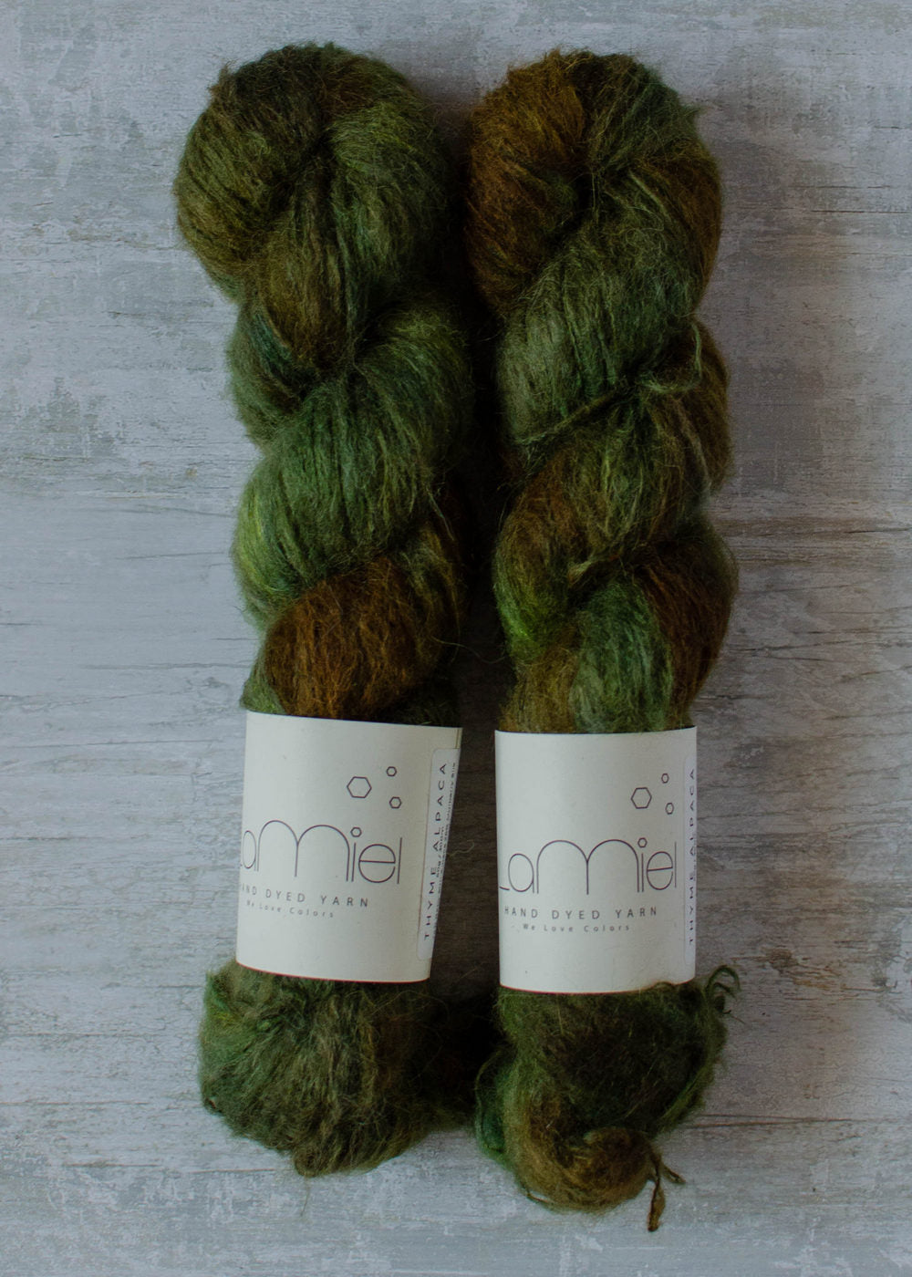 Súper oferta!! Pack compuesto por dos madejas de la calidad Thyme Alpaca en el color Wakame. Este pack puede estar compuesto por distintas tintadas, puedes ver las madejas en la foto.