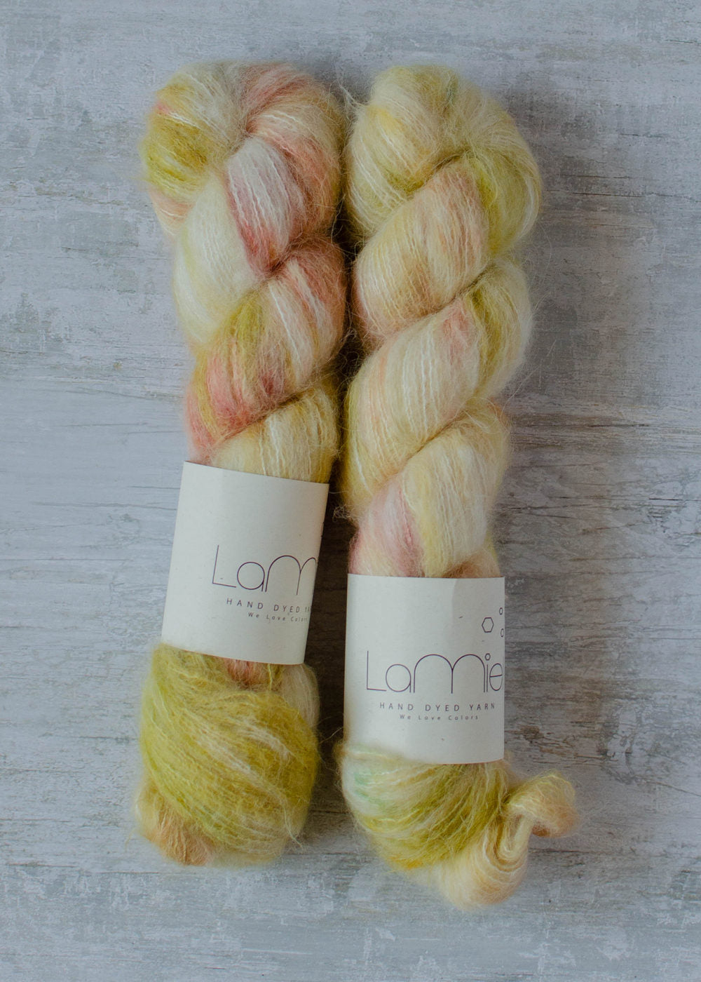 Esta lana está teñida a mano en pequeños lotes. Por la naturaleza de la técnica no existe ninguna madeja idéntica, ni siquiera en el mismo lote, siempre habrá algunas variaciones. Estas variaciones pueden incluir diferencias en el tono e intensidad de color, motas más claras o más intensas, etc. Cada madeja es única.