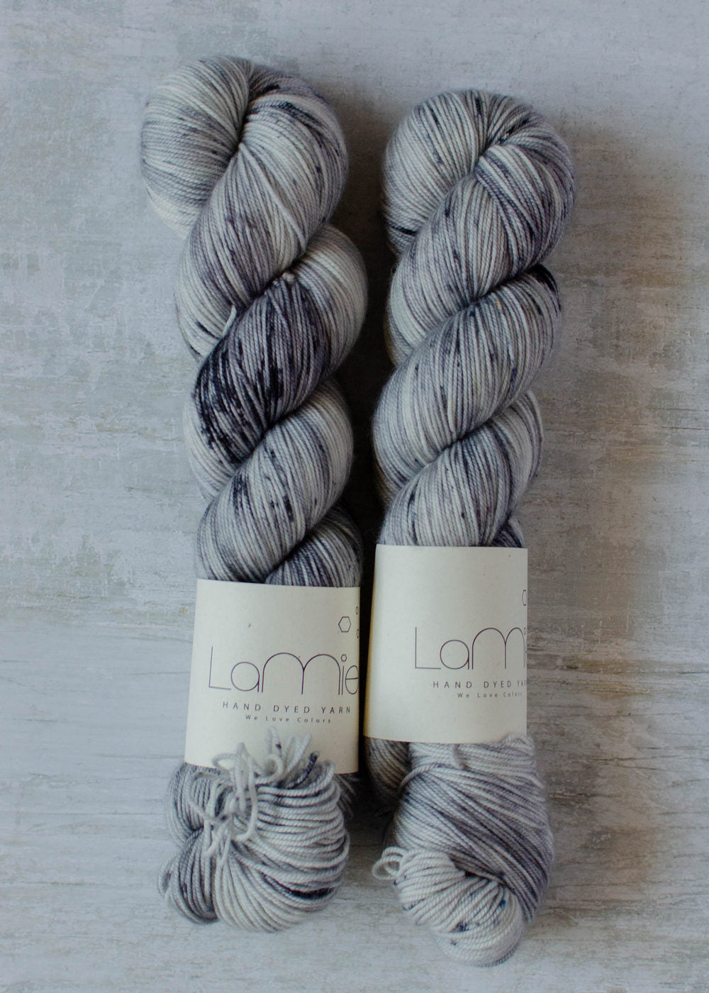 Esta lana está teñida a mano en pequeños lotes. Por la naturaleza de la técnica no existe ninguna madeja idéntica, ni siquiera en el mismo lote, siempre habrá algunas variaciones. Estas variaciones pueden incluir diferencias en el tono e intensidad de color, motas más claras o más intensas, etc. Cada madeja es única.