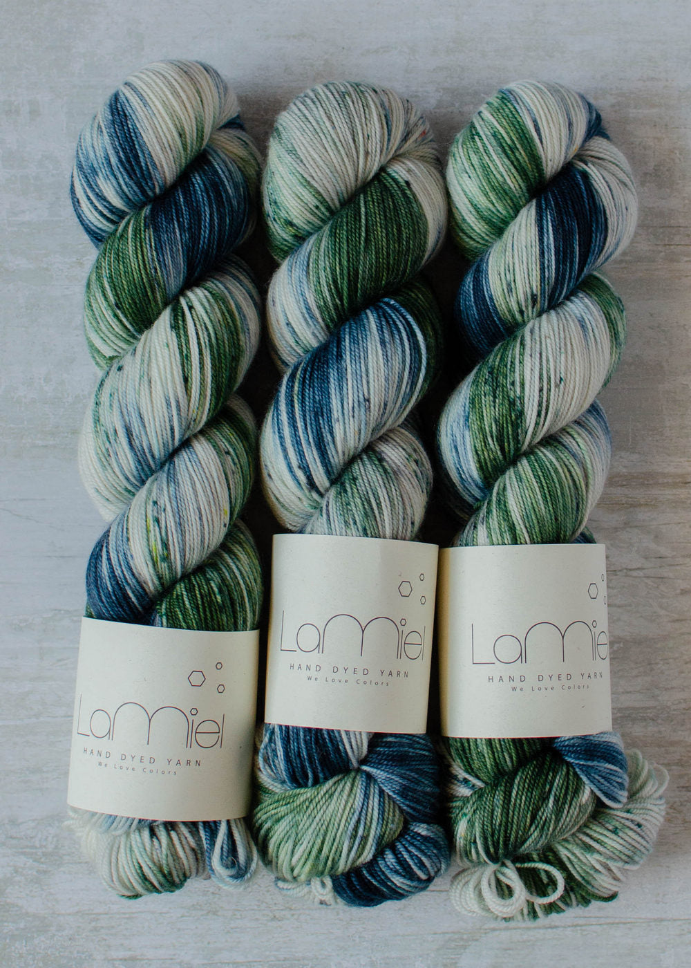 Esta lana está teñida a mano en pequeños lotes. Por la naturaleza de la técnica no existe ninguna madeja idéntica, ni siquiera en el mismo lote, siempre habrá algunas variaciones. Estas variaciones pueden incluir diferencias en el tono e intensidad de color, motas más claras o más intensas, etc. Cada madeja es única.