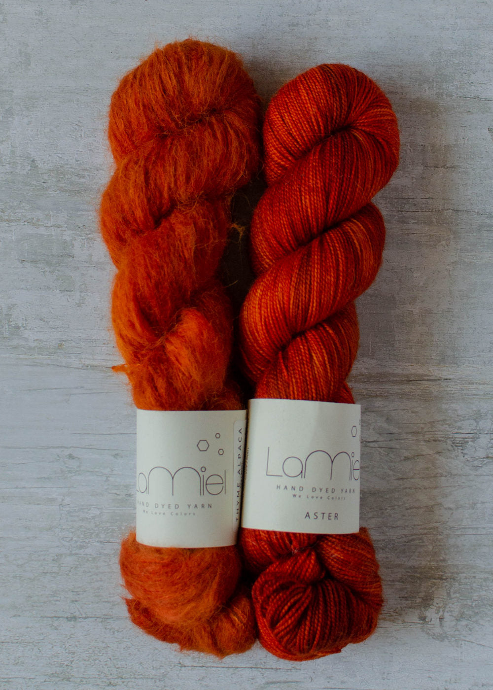 Súper oferta!! Pack compuesto por dos madejas: 1 madeja en la calidad Aster Sock y una madeja en la calidad Thyme Alpaca, ambas en el color Winifred. Este pack puede estar compuesto por distintas tintadas, puedes ver las madejas en la foto.